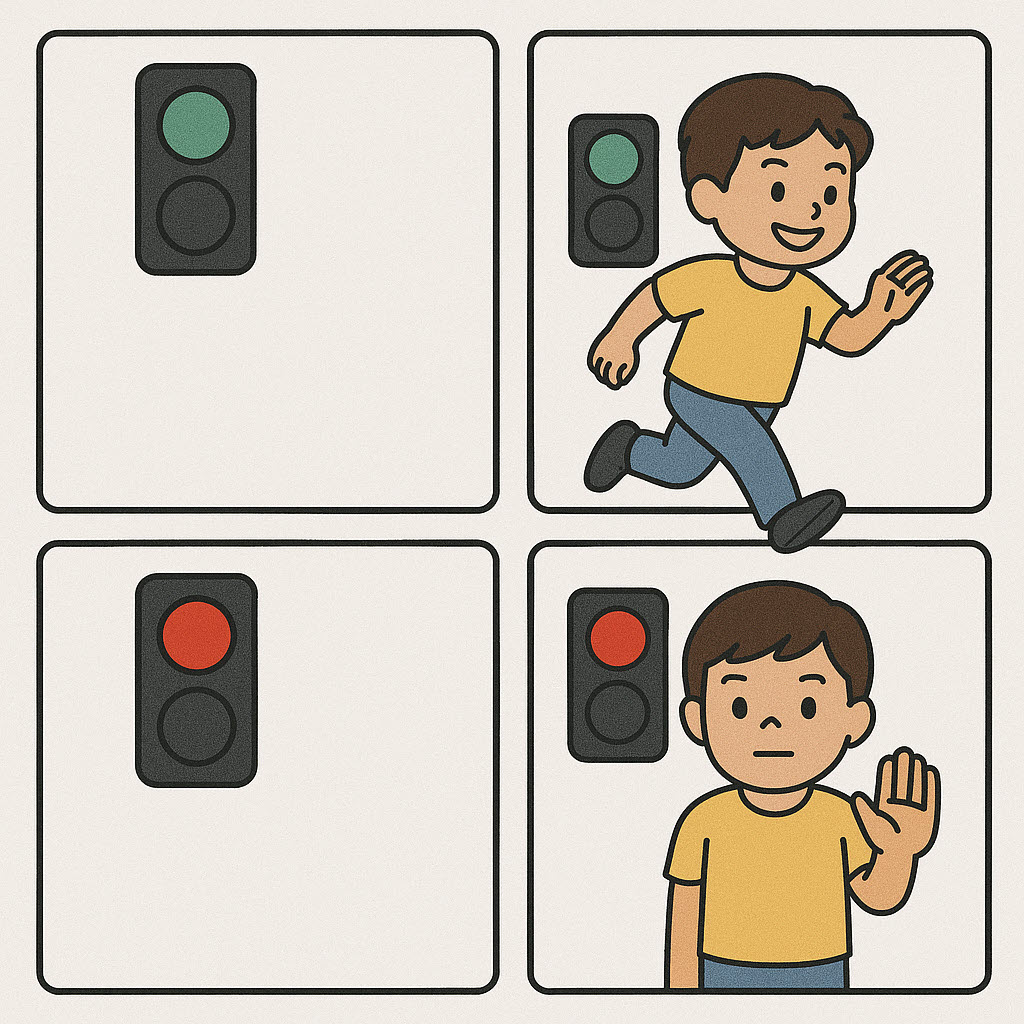 Play “Move → Stop” at home using toys, lights, or claps. Praise when the child freezes calmly on “Stop.”